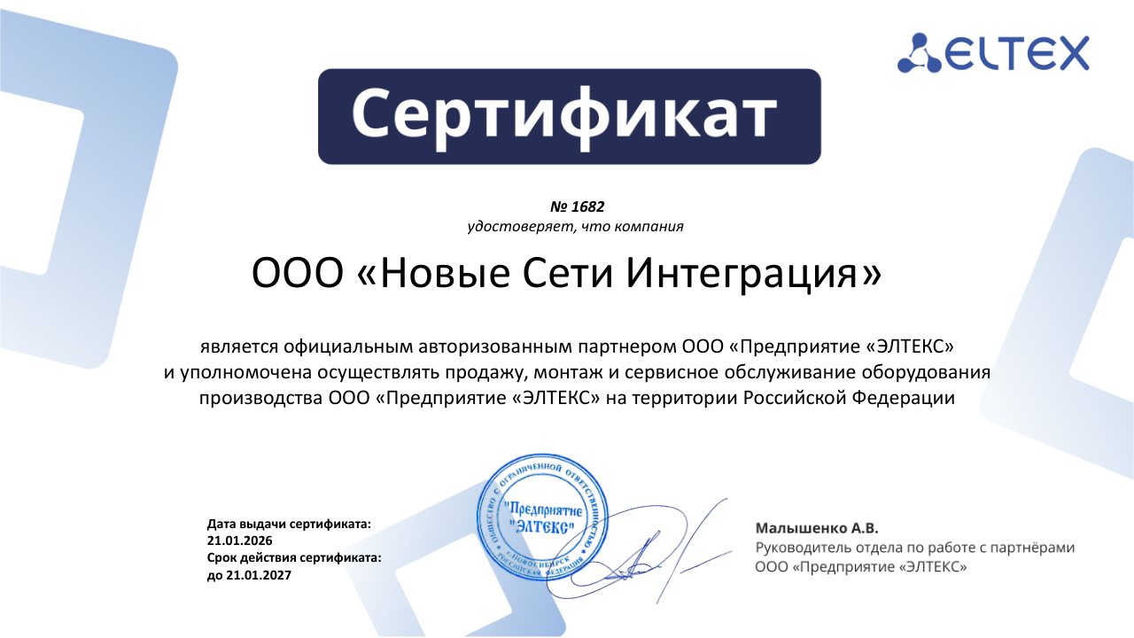Новые Сети Интеграция – официальный партнер Eltex.