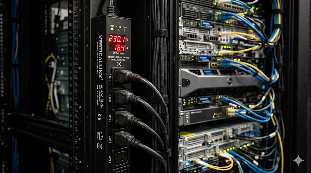 мониторинг – датчики температуры, влажности, открытия дверей, а также интеллектуальные системы управления (часто входящие в состав «умных» PDU).